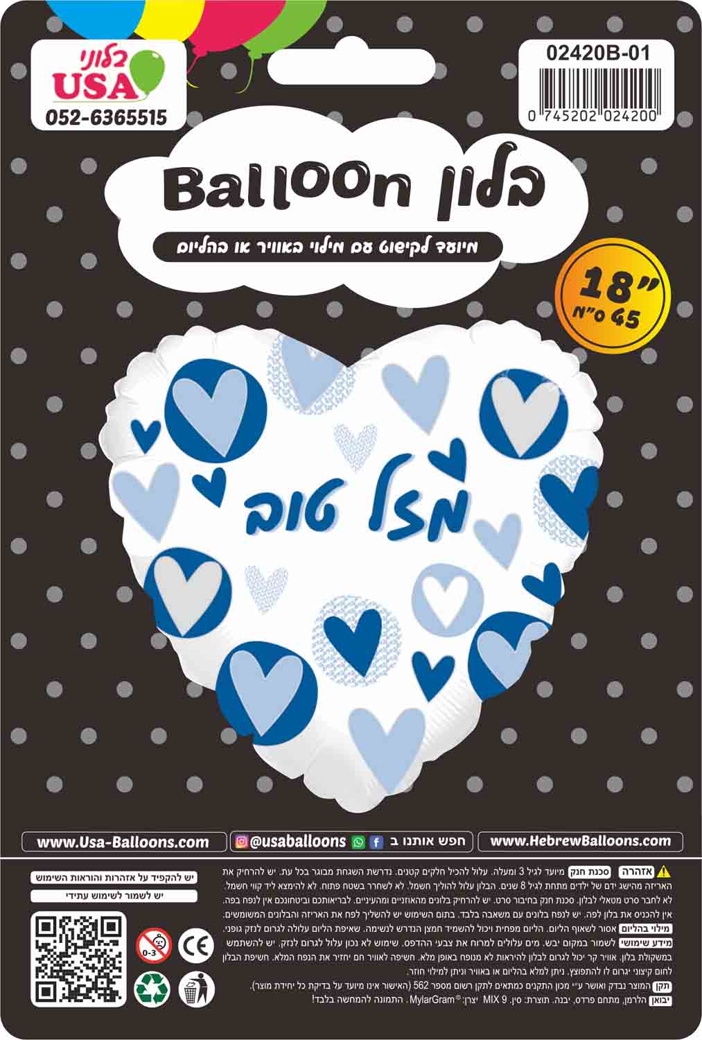 Mazel Tov Blue Hearts Hebrew